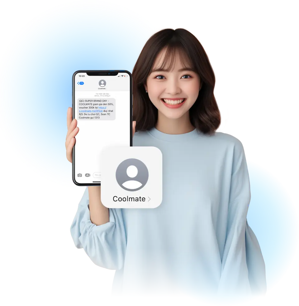 Thoát khỏi khuôn khổ số điện thoại nhàm chán, SMS Brandname mang đến trải nghiệm giao tiếp mới mẻ, đẳng cấp cho thương hiệu và khách hàng. Tên thương hiệu của bạn sẽ hiển thị ngay trên phần người gửi, khẳng định vị thế và tạo dựng niềm tin ngay từ khoảnh khắc đầu tiên.